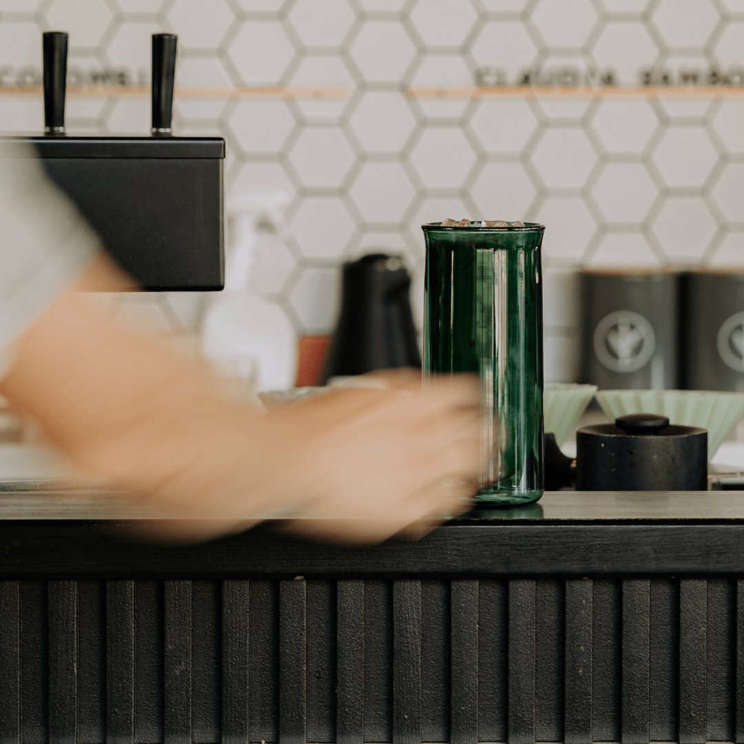 We make all of our glassware from borosilicate glass. Itโs durable, stable under thermal shock, and completely inert so it wonโt stain, hold odors, or affect your coffees flavor.